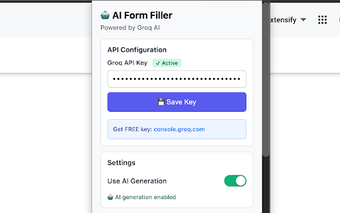 AI Form Filler to rozszerzenie do przeglądarki Chrome, które umożliwia automatyczne wypełnianie formularzy za pomocą inteligentnie generowanych danych testowych. Narzędzie jest idealne dla programistów, testerów QA oraz osób, które często wypełniają formularze online. Dzięki wsparciu zaawansowanego AI (Groq AI, Llama 3.1) użytkownicy mogą korzystać z realistycznych i kontekstowych danych, co znacznie usprawnia proces wypełniania formularzy.